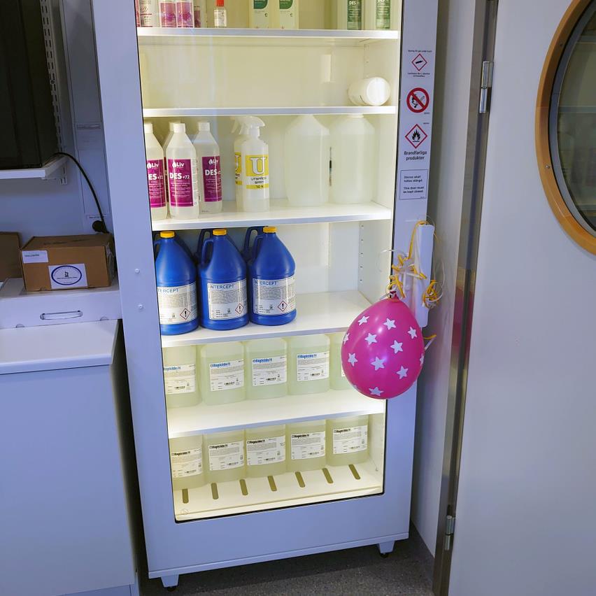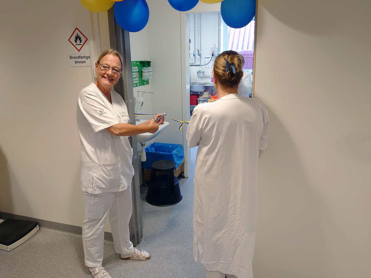 Vid invigningen av det nya sköljrummet hade personalen dekorerat med ballonger.