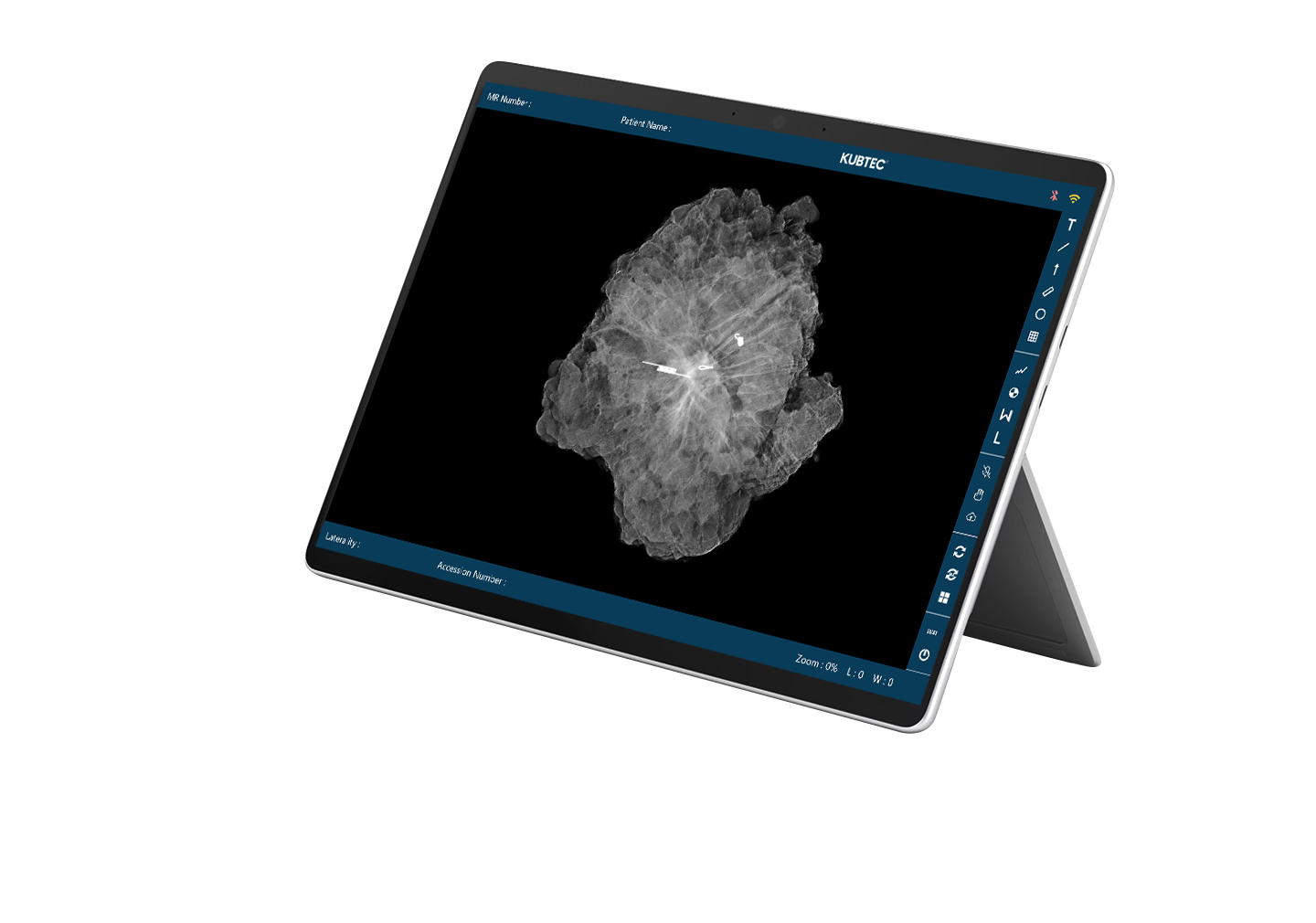 Med den medföljande Pablo-plattan kan du scrolla, zooma och analysera bilder utan att lämna det sterila området. Du placerar skärmen precis där du behöver den, oavsett var röntgenskåpet står i rummet.